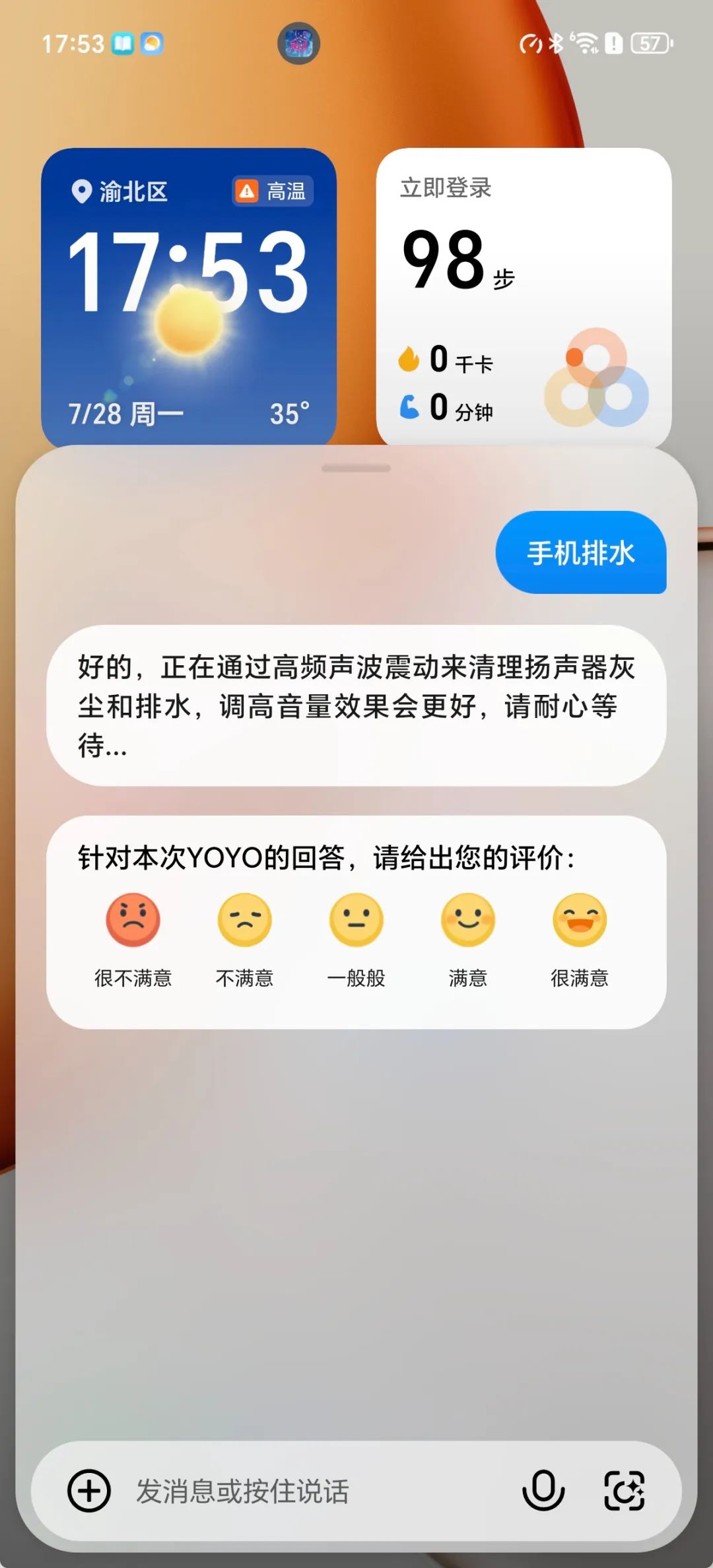▲输入“手机排水”指令,荣耀X70便可自动进行排尘排水。