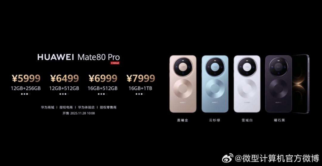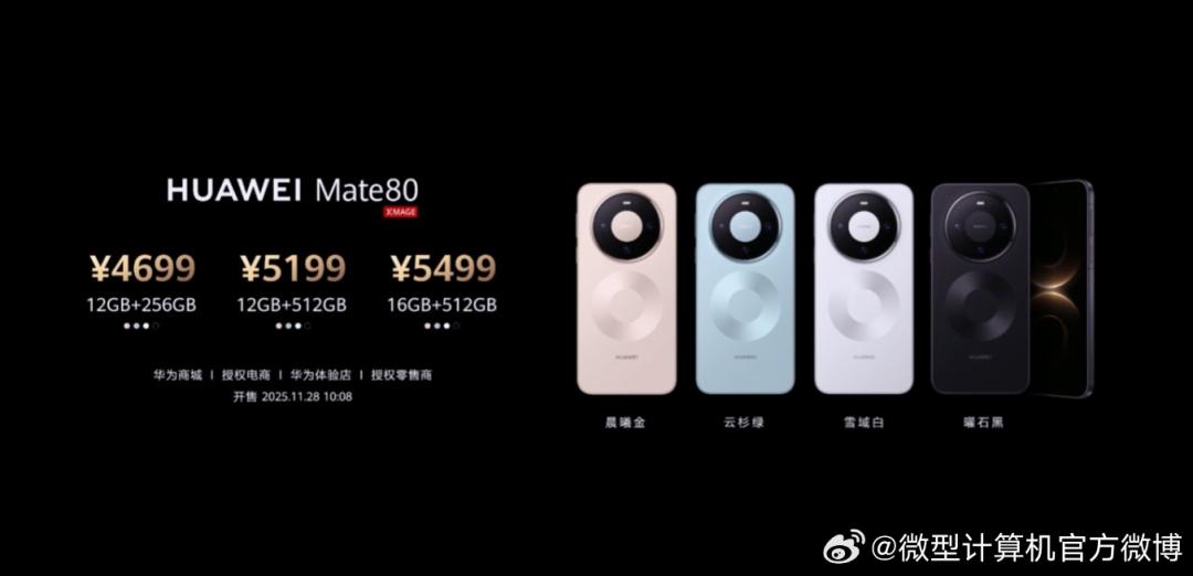 HUAWEI Mate 80系列现火热预售中,将于2025年11月28日10:08 正式开售,售价4699元起,购机更可享多重福利!限时可领至高1000元鸿蒙日日新签到红包、价值1200元鸿蒙有礼权益礼包、限量精美礼品等你来领!随新机购买HUAWEI Care+可限时获赠保值焕新权益。选购HUAWEI Mate 80更可享至高300元以旧换新额外补贴、至高12期分期免息等专属购机权益,欢迎前往华为门店了解及选购!
