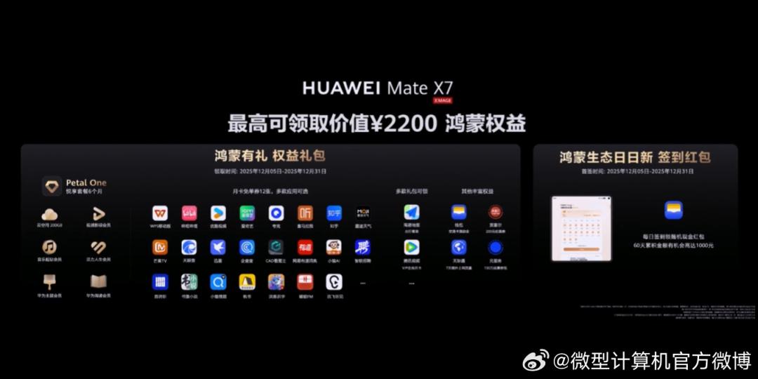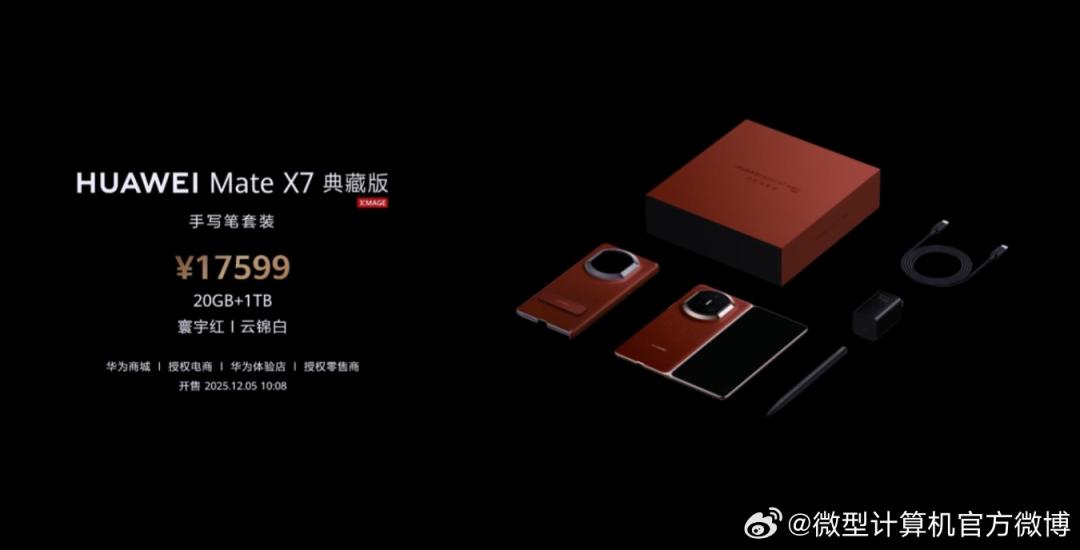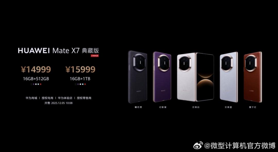HUAWEI Mate X7将于2025年12月05日10:08正式开售,建议零售价12999元起。