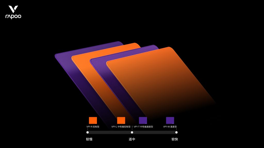 全新VP1系列职业电竞鼠标垫,以 “风、雨、雷、电”四种专属表面,表面纹理、移动阻尼、急停掌控、定位精准、滑动速度、启动速度、表面纹理等6个维度塑造不同的滑垫、涩垫、中性垫。为普通游戏玩家以及专业电竞用户提供高质量赛事级桌面操控解决方案,进一步完善雷柏专业级别赛事外设生态版图,同时为电竞鼠标垫市场注入全新活力,“极致体验”、“日常享受”。