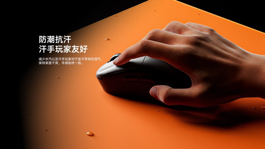 针对汗手玩家及潮湿环境影响鼠标垫性能,VP1系列从源头改善 “潮湿影响手感” 的问题。自带轻微疏水特性,可减少水汽吸附;特殊编织间隙设计能快速疏导手部汗液,避免汗液残留导致布面变硬、打滑或手感衰减。