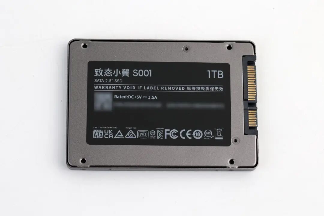 致态小翼S001固态硬盘是一款面向新老电脑打造的高性价比存储产品,由于它采用SATA Ⅲ接口,因此这款产品具有很好的兼容性,毕竟不论是15年前的老主板,还是现在最新的X870E、Z890主板,它们都配备了SATA接口。外观上,与普通的SATA产品相比,它没有明显区别,仍是传统的长方形外壳,搭配7mm厚度设计。不过其外壳为全金属材质打造,显然SSD内部的热量可以快速传导到金属外壳,加速散热,降低固态硬盘的工作温度。