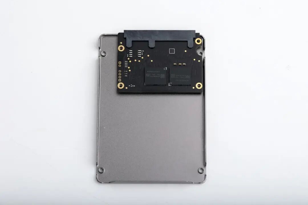 致态小翼S001固态硬盘1TB的结构很简单,由4颗长江存储原厂颗粒与1颗SATA 3.2 DRAMLESS主控组成。