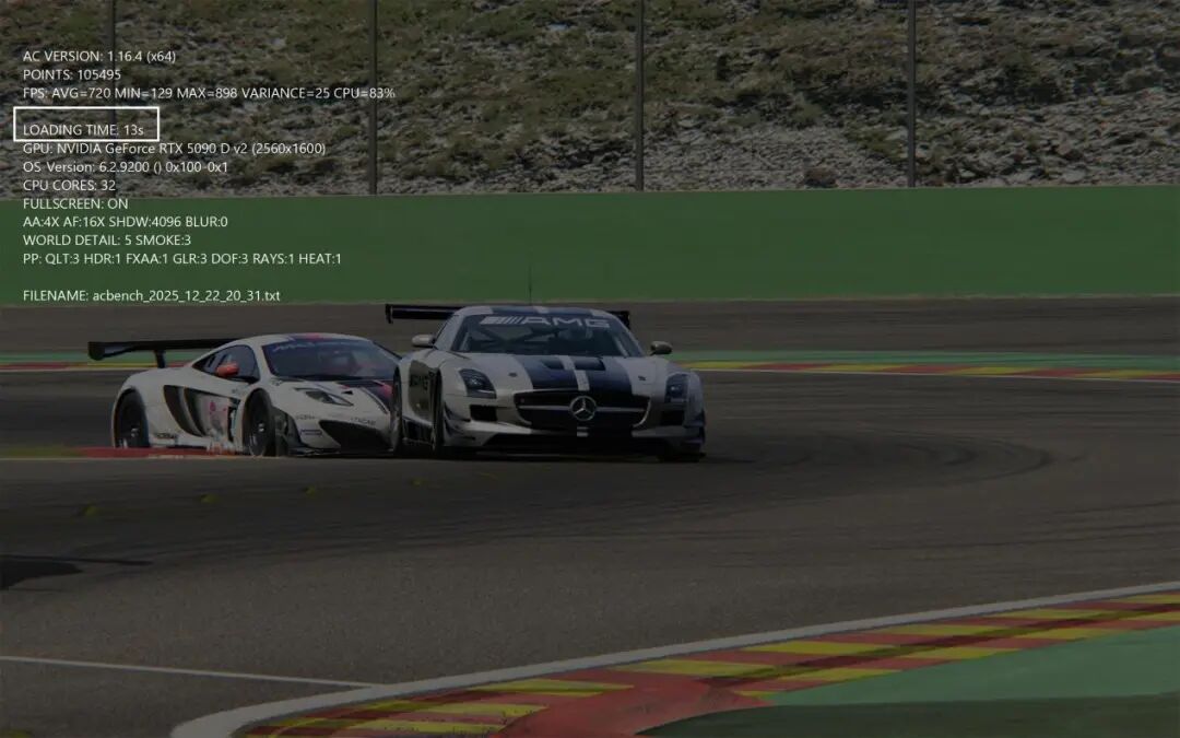 致态小翼S001固态硬盘1TB在2560×1600分辨率、最高画质下载入《神力科莎》单个赛道的耗时为13s。