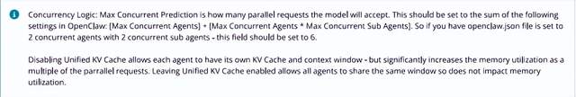 - 关于”最大并发预测”和”统一KV缓存”的详细说明,请参阅上文中的并发智能体逻辑。目前,我们将”最大并发预测”设置为6,并保持勾选”统一KV缓存”。