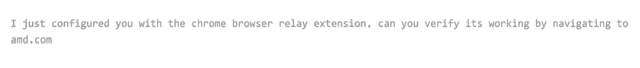 I just configured you with the chrome browser relay extension, can you verify its working by navigating to amd.com