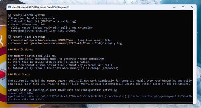 虽然运行和安装OpenClaw有多种方式,但对于Windows用户来说,这些方法可能存在一些取舍或功能缺失。通过WSL2部署OpenClaw的AMD最佳已知配置(BKC)提供了一种更简化的方法,使用户无需离开熟悉的Windows环境,就能直接在AMD硬件上运行本地AI智能体和大语言模型工作负载。该配置通过使用基于llama.cpp的LM Studio,实现了完全本地化的LLM部署,并通过本地embedding提供Memory.md的功能支持。