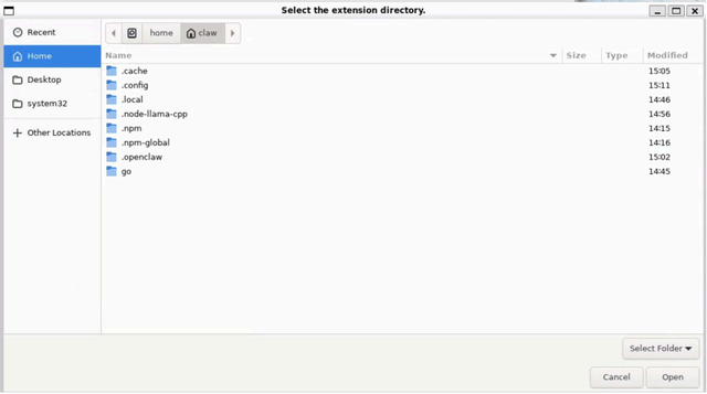 按Ctrl + H以显示以点(.)开头的隐藏目录,然后点击 .openclaw → browser → chrome extension,进入该文件夹后点击 Open(打开)。